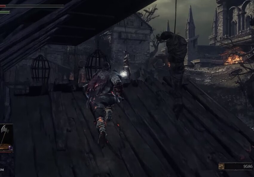 - На верхушке крыши непосредственно на трупе, если забраться на храм. Эта дорога указывает на путь к Розарии. Зайти туда можно, поднимаясь от костра Часовня очищения на специальном устройстве.