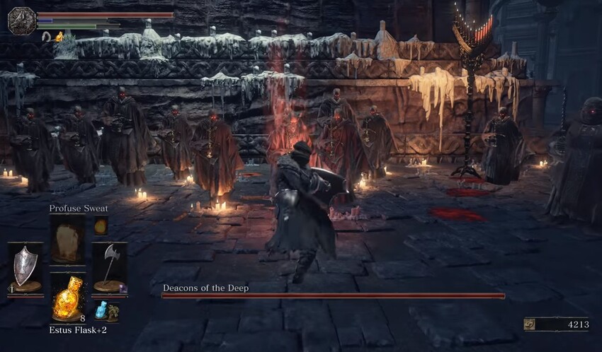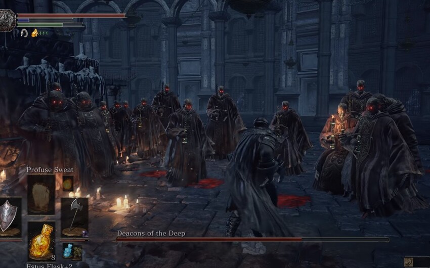 Так как дьяконы быстро умирают, то будут полезны эффективные предметы в виде Кольца злого глаза или Асторского копья. Это уже проверено на практике. Кроме того, защитить от поражения может восстановление эстуса.