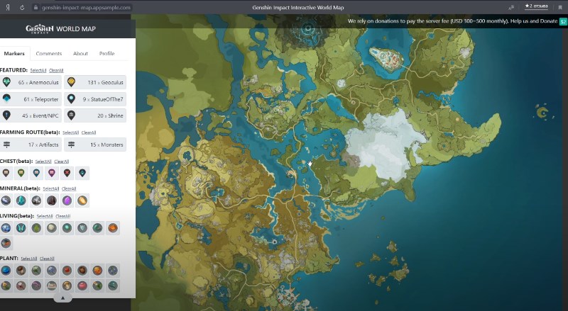 - Еще один невероятно полезный ресурс — это интерактивная карта Genshin Impact. В нем указано, где вы можете найти каждый анемокул, геокулус, святилище, статую семи, телепорт, локальное задание и многое другое.