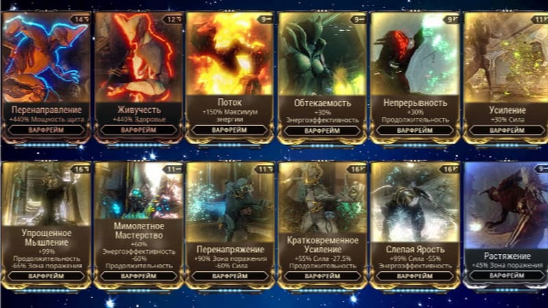 Это модификации, повышающие вместимость Варфрейма и действующие сразу на весь отряд или локацию. Их эффекты могут между собой складываться. Рекомендуем новичкам ознакомиться со всем спектром представленных в игре аур, даже если вы принадлежите к секте коррозийного выброса.