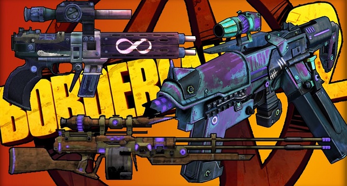 Фиолетовый цвет встречается реже, чем все предыдущие вместе взятые. Кстати, эридианское оружие, как таковое, полностью исчезло из игры, зато появились аналоги от стандартных производителей. Первыми появились плазмометы – пистолеты-пулеметы, стреляющие зарядами плазмы. После этого стали выпускать снайперские винтовки-рельсовики, которые стреляют лучами. Ну и пистолеты со штурмовыми винтовками также стали стрелять плазмой. Все эти виды оружия, использующие эридианские технологии, могут быть только фиолетового цвета.