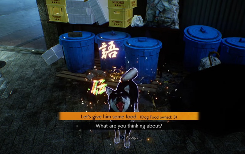 Итак, открываете способность Spectral Vision идёте к ближайшему магазину и покупаете корм. Впрочем, его и так можно найти, исследую улицы и дома Сибуи. Потом остаётся найти собаку и выбрать действие – покормить либо угостить. Вот собственно и всё – никакой сложности нет, просто изначально эту функция заблокирована отсутствием нужного умения.