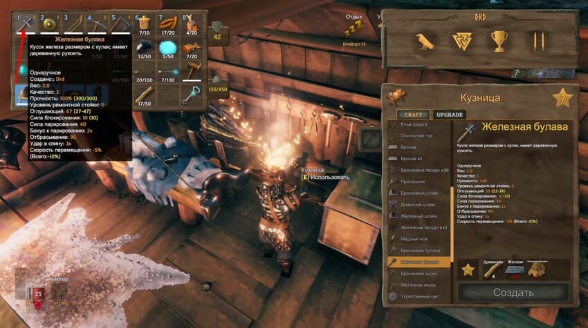 Булаву стоит прокачать минимум до второго уровня. На первом будет не хватать урона, да и прочность будет недостаточной – оружие может развалиться прямо в разгар сражения.