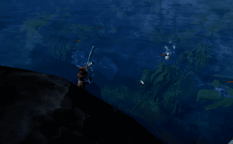 После этого необходимо отправиться в начальную локацию прокачки, найти любой глубокий водоем, надеть удочку вместо оружия в руки, нажать на значок рыбной ловки из журнала со способностями.