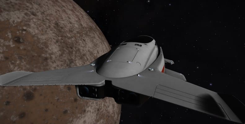 В 5 километрах от поверхности корабль переключится на обычные двигатели. После этого вы сможете запросить стыковку с наземной колонией или приземлиться на ровный участок поверхности, выпустив шасси.
