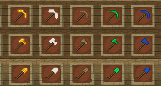 Так же, как и кирка, топор может быть создан практически из любого материала.