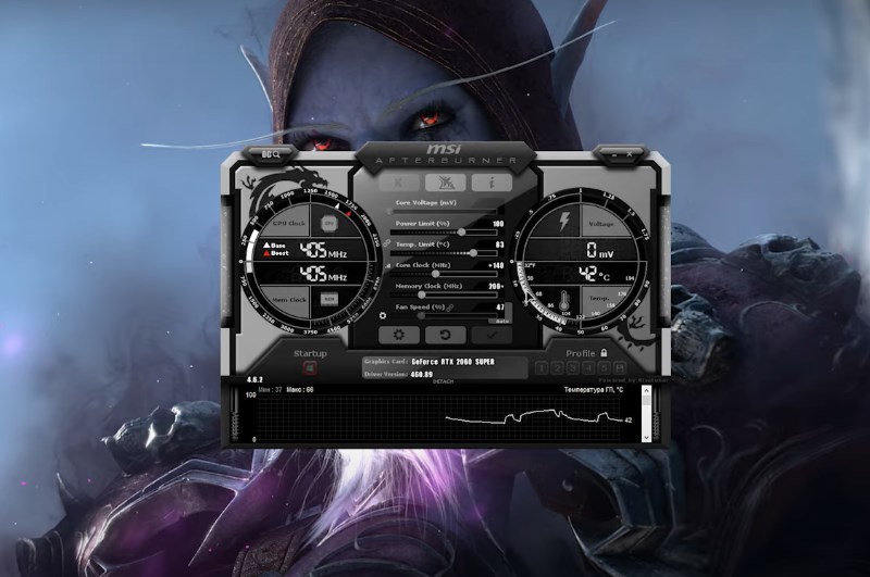 Слева будут отображаться основные параметры, а справа температура и вольтаж, своего рода «полоска здоровья видеокарты». Когда температура превысит 85 градусов по Цельсию, то рекомендуется увеличить число оборотов вентиляторов. Но если температура превысит 100 градусов Цельсия, то нужно оперативно отключить разгон и выключить систему для дальнейшего охлаждения и отдыха от нагрузки. Если этого не сделать, чип видеокарты расплавится и приведёт к поломке всей системы. Для сильного разгона нужно использовать прежде всего водяное охлаждение, а также видеокарты, которые могут выдержать сильную нагрузку. Для остальных же не рекомендуется повышать частоту выше, чем на 10%