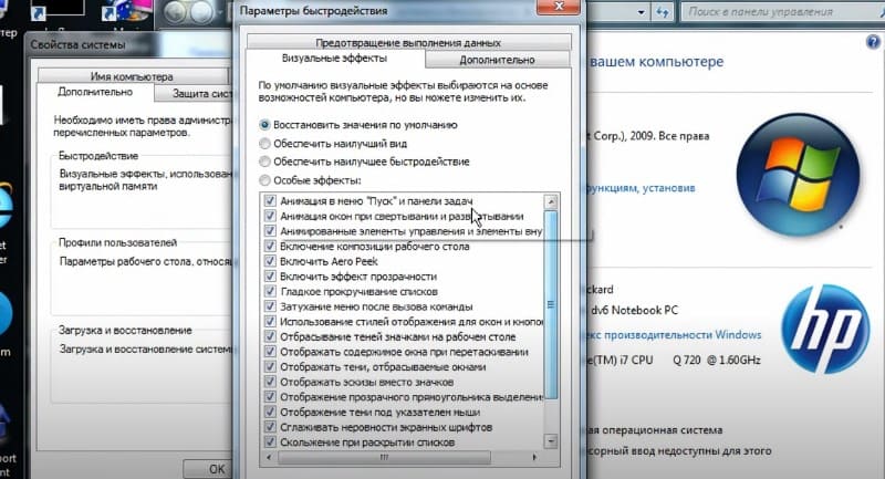 Если не хочется отключать абсолютно все эффекты системы, то есть возможность активировать опцию «Особые эффекты» и на своё усмотрение включить или отключить конкретные пункты.