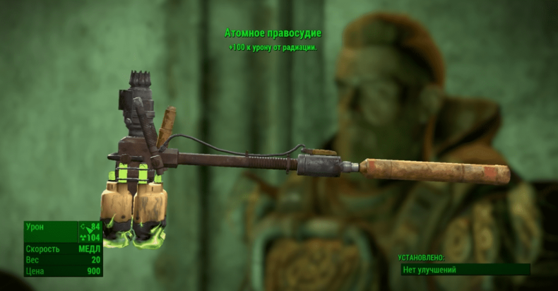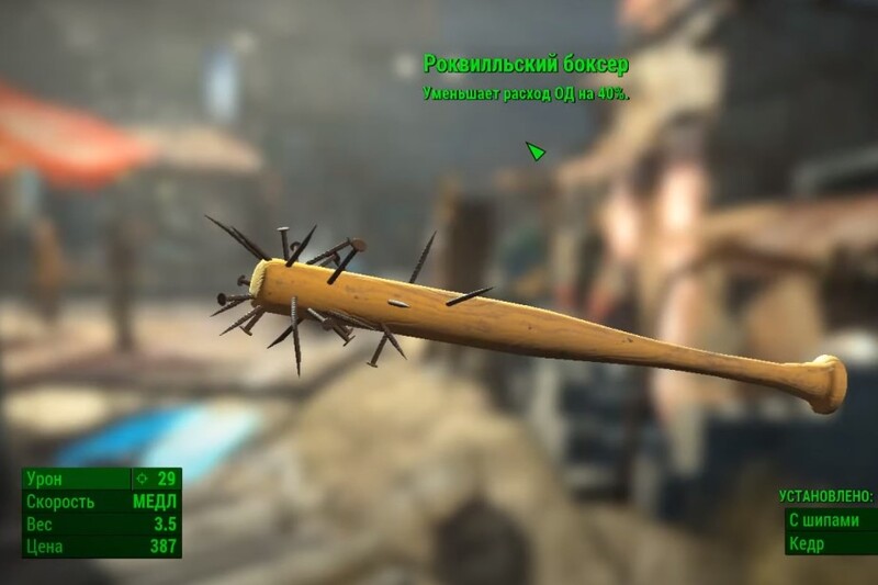 Бейсбольная бита, в которую прежний владелец заколотил пару десятков гвоздей. Кроме увеличенного урона, в режиме VATS эта дубина снижает расход очков действия на 40%. Купить оружие можно на рынке Даймонд-Сити у НПС Мо Кронин.