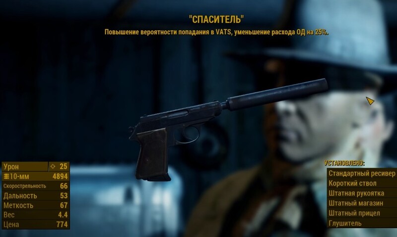 Пистолет с глушителем, рассчитанный на использование 10-мм патронов. По сравнению со стандартным пистолетом подобного типа, «Спаситель» имеет худшие дальность стрельбы и точность, но он мощнее. Магазин более емкий, а стоимость ОД в режиме V.A.T.S. дешевле. Недостатки оружия — невозможно установить оптический прицел или перекрафтить в карабин. Можно получить в ходе выполнения задания «Агентурная работа», взяв с тела Томми Уиспера в Коммутаторе.