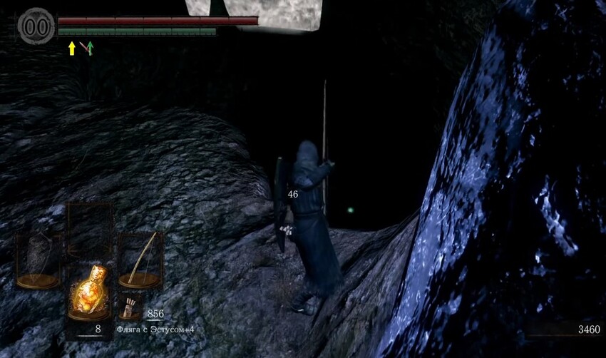 Кольцо тумана тоже поможет увидеть, куда летят стрелы. Долго, но просто. Но лучше пойти привычным путем. Наше любимое снаряжение – легкий сет, магический меч, кольцо Хавола, усиление заклинаний. Если будем использовать серебряную подвеску, то есть смысл оставить только ее и Флягу с Эстусом. Идем в Белый туман.