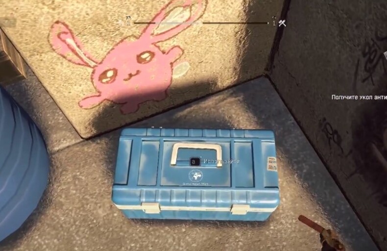 Если нужно мощное оружие ближнего боя — Мачете Korek отличный вариант. Ее чертеж можно найти на крыше многоэтажного дома. Ящик находится около 3-ех запертых дверей, под рисунком розового зайца. Чтобы открыть его, придется пнуть по ящику 50 раз. Только после этого можно будет забрать чертеж уникальной мачете.
