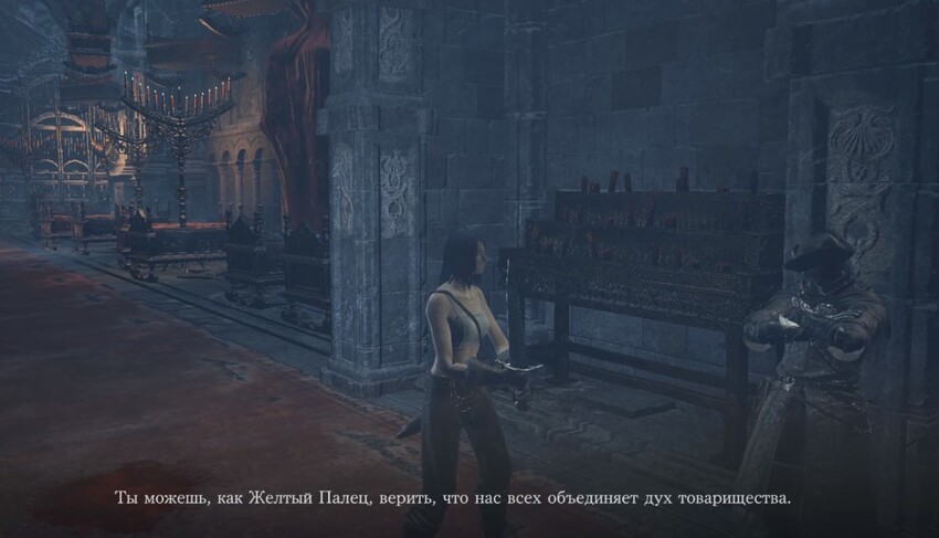 Затем откройте дверь, и вас увидит Розария. Но без нужного предмета не подходите к ней. Когда вы достигнете ковенанту, то увидите несколько заданий. Их нужно выполнить, и тогда сможете забрать бледные языки, увеличить уровень ковенанта и свой. Также можно распределить личные способности.