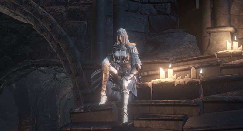 Рассмотрим Квест Сиррис из Бессолнечных земель в игре Дарк Соулс 3. После зажжения этого костра недостроенная крепость в месте Путь жертв в Храме Огня возникнет новый герой игры. Она будет сидеть справа от прохода к кузнецу на ступеньках. Вначале она не скажет ничего интересного. Чтобы это исправить, отправляемся в локацию Путь жертв на костер Руины Цитаделя и, глядя на двери, открываемые тремя огнями, которые ведут к Хранителям бездны, поворачиваем направо.