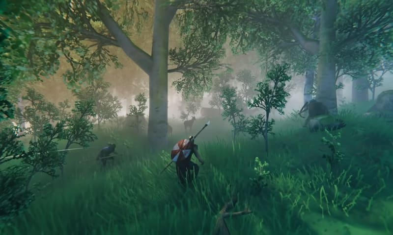 Копье наносит неплохой урон, но у него есть одна огромная проблема – оно жрет за один удар очень много стамины. Нам это не надо. Грубо говоря, за всю игру мы ударим его 3-4 раза, и придется восстанавливаться. А здесь такого нет. То, что у нас есть топор – это хорошо, но без еды мы тоже никуда. Я советую вам обязательно пособирать малины, пожарить мясо и найти нэков. Это такие похожие на ящериц существа, которые живут в основном возле водоемов.