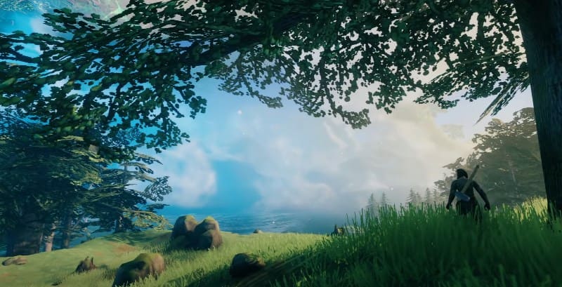 Теперь перейдем к тому, что будет в дальнейшем. Это наша основа, по которой мы пишем прохождение игры Валхейм. В будущем мы сможем заиметь себе кирку из оленьего рога, который позволит нам делать такие вещи: подбегать к камню и бить по нему. После чего мы получаем камень.