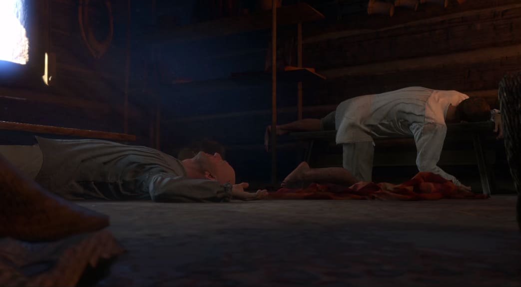 Очнется он на сеновале, где в одном углу отец Богута уже «оседлал свою кобылку». Служанка, которая осталась без одежды, предложит не терять времени и предаться столь же приятному занятию. По откровенности эпизод не уступает сцене с Терезой — в отличие от дворянок, показывать нагих крестьянок разработчики Kingdom Come не стесняются.
