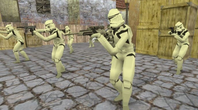 Многие сборки грешат тем, что меняют внешку персонажей, но оставляют вид от первого лица с руками от старых скинов. CS 1.6 Star Wars лишена этого недостатка — если ты захочешь играть за штурмовика, то и руки, держащие бластер, будут облачены в их привычную белую броню. Даже звуки соответствующие! Главное правило: играя за штурмовика, не начинай стрелять, как штурмовик: твоя команда это не оценит!