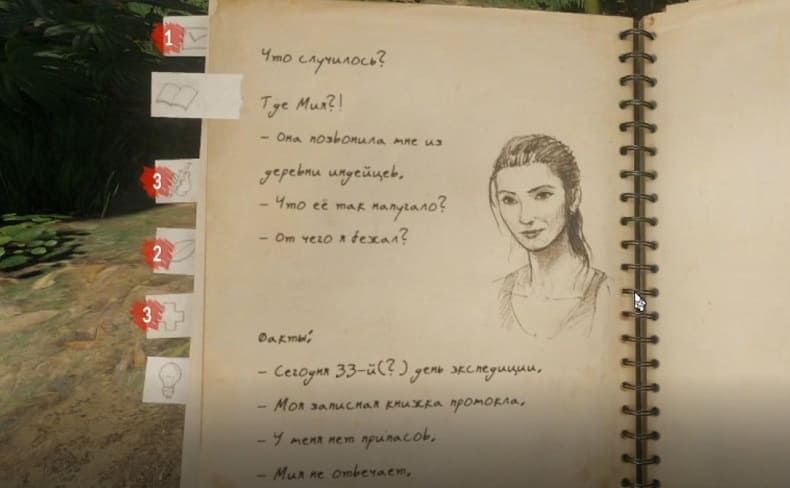 Очнувшись, наш герой остаётся один на один с зелёным адом, не имея при себе ничего, кроме местного аналога пип-боя, пустого рюкзака за спиной и собственных знаний. Никаких подсказок о том, как спасти Мию и выбраться из джунглей, ждать не стоит. Придётся полагаться на ум и смекалку.