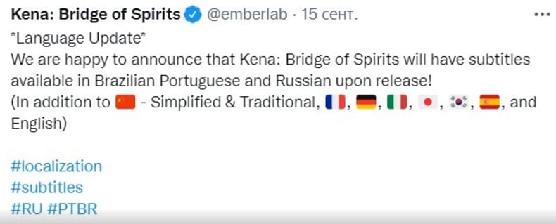 Уже давно известно, что разработчики и издатели не планировали переводить игру на русский язык. Они хотели оставить русскоязычное комьюнити даже без субтитров. Но 15-го сентября в твиттере, в официальном аккаунте игры, появился пост о поддержке русских и бразильских субтитров. Обрадовали. Ура!