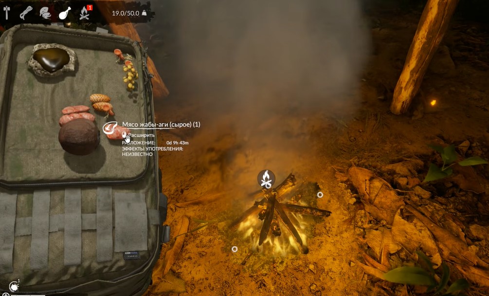 Важно! Нельзя есть сырое мясо. В противном случае игровой персонаж получить дебаф “отравление”, из-за чего лишится большого количества питательных веществ.