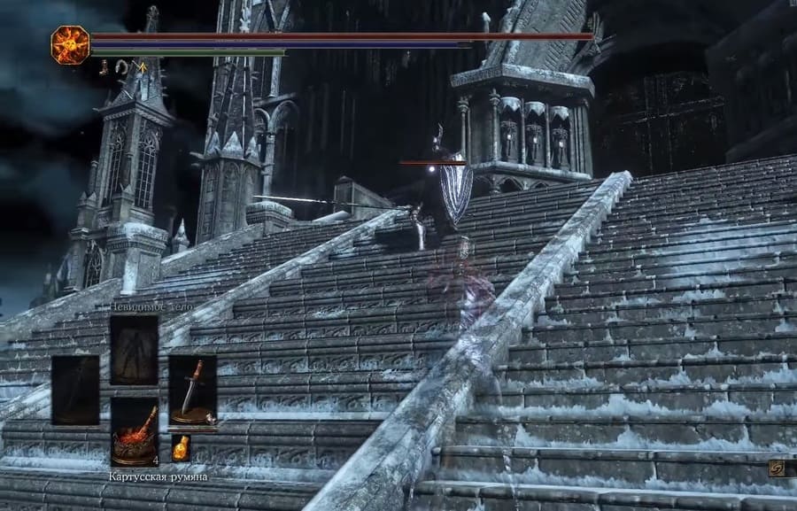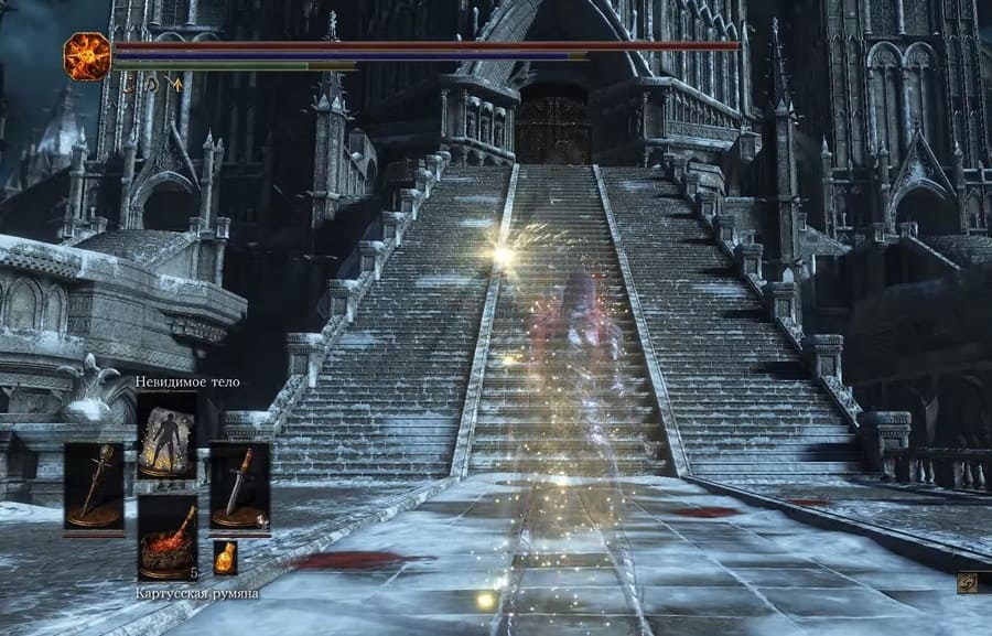 В DS III есть заклинание под названием «Невидимое тело», которое делает персонажа на некоторое время невидимым для врагов.
