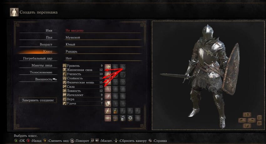 Ключевые характеристики милишника в любой игре – огромный запас здоровья и физической силы. Например, если мы выберем класс «рыцарь» при создании персонажа в Dark Souls 3, увидим, что по умолчанию у него больше всего очков на следующих характеристиках: