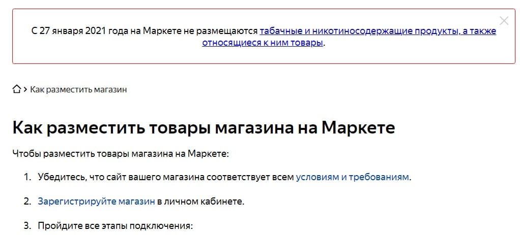 Администрация Яндекс Маркета разработала ряд правил для ресурсов, принимаемых в систему: