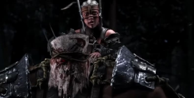 Пара представляет собой огромного великана в доспехах и маленькую карлицу у него на спине, также облаченную в амуницию, со стальными когтями на руках.