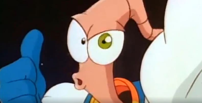 Под какими веществами в голову калифорнийскому гению Дугласу Тен-Нейплу приходили в голову такие мысли, история умалчивает. Тем не менее, благодаря его фантазии, мир узнал о невероятном межгалактическом спасителе всего живого и неживого – отважном червяке Джиме, которого, к слову, предлагали назвать Лэнсом. Сокращенно от Ланселота. Но Дуглас не согласился и настоял на привычном Джиме.