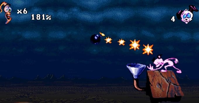 Кстати, червяка Джима создавали на том же движке, что и Алладина, написанным Дэвидом Перри (один из ведущих разработчиков Джима). Правда авторов не устраивала графическая составляющая, потому они решили заметно её подтянуть. Всех персонажей и анимации рисовали вручную, а затем сжимали и отправляли в игру.