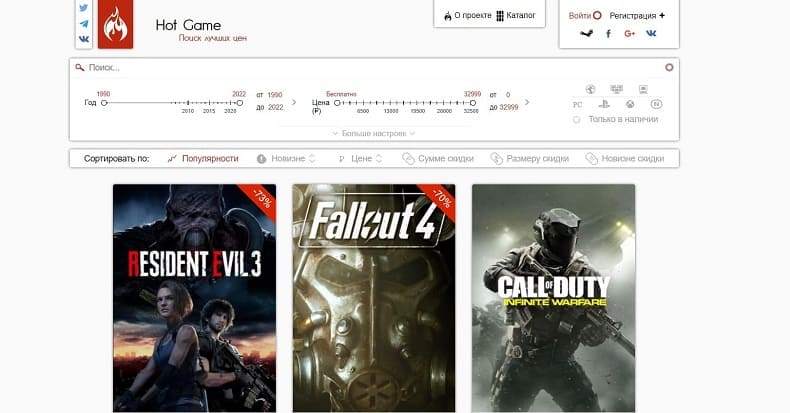 Здесь всё просто. Переходим на сайт Hot-game.info, смотрим на список продуктов, либо вводим искомую игру в поисковую строку, выбираем предпочитаемые способы оплаты и сравниваем цены в представленных магазинах.