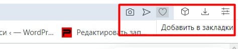 В этом браузере закладки называются «Избранное», а значок звездочки расположен не в поисковой строке, а непосредственно в панели обозревателя (сверху справа, по соседству с настройками).