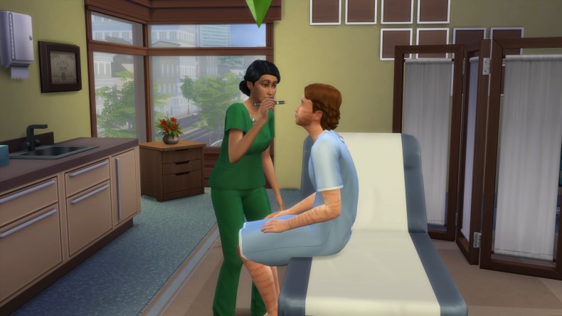 Становятся доступны более сложные обязанности — взять и исследовать анализы, провести тесты на беговой дорожке, сделать рентген, поставить диагноз и лечить пациента с помощью укола или операции. Всего в игре 8 болезней, не имеющих отношения к реальным недугам — например, Раздутие головы, Лучистые глаза, «Ветры и смешки». Пик карьеры доктора — принятие родов у беременной симки. Персонаж, который хорошо учился в школе или закончил институт и получил соответствующий диплом, имеет стартовый бонус и может перешагнуть через несколько ступеней карьерной лестницы, начав работать сразу на более сложной должности.