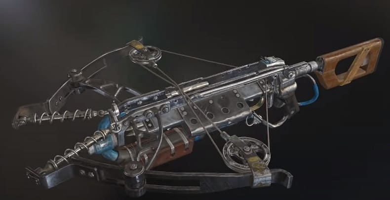 Шутер от первого лица с элементами РПГ, выпущенный в 2013 году. Сочетает элементы стимпанка и научной фантастики. Действие этой игры разворачивается в 1912 году в вымышленном летающем городе Колумбия, куда отправляется протагонист Букер Девитт. Он работает частным детективом и выполняет очередной заказ: найти девушку по имени Элизабет. В арсенале героя — множество футуристически-стимпанкового оружия, среди которого доступен и арбалет.