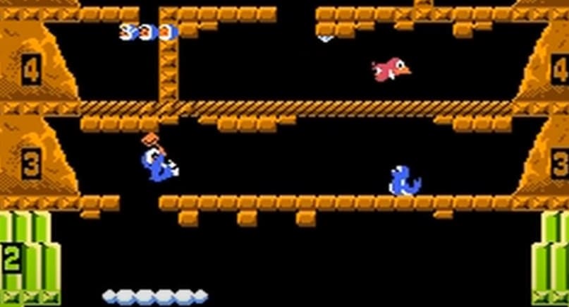 Платформер, который многие и не вспомнят, выпущенный в 1985-м году компанией Nintendo. По сюжету Ice Climber, двум эскимосам с киянками (играть можно вдвоём) необходимо преследовать кондора через 32 уровня, укравшего овощи. А как мы знаем, овощи в зимний период – очень ценный ресурс, потому эскимосы с большим упорством пробираются к вору.