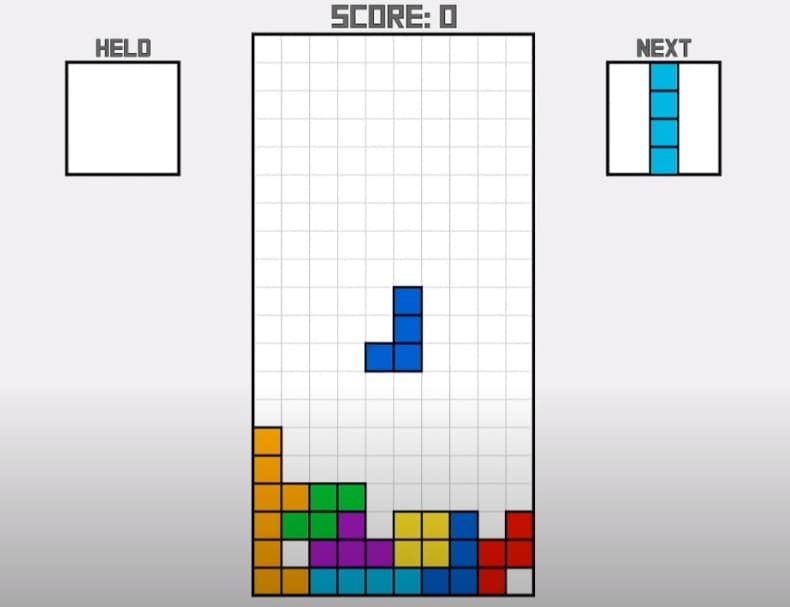 Правила у игры несложные. Действие разворачивается на поле в форме стакана размером 10х20 клеток. Сверху падают фигуры, состоящие из 4 квадратов, которых в игре есть несколько видов. Фигура падает, пока не наткнется на нижний край экрана или на другую фигуру. Игроку нужно переворачивать их, перемещать по горизонтали и ставить так, чтобы ряд из 10 клеток на месте приземления фигур был заполнен — тогда он убирается и начисляются очки.