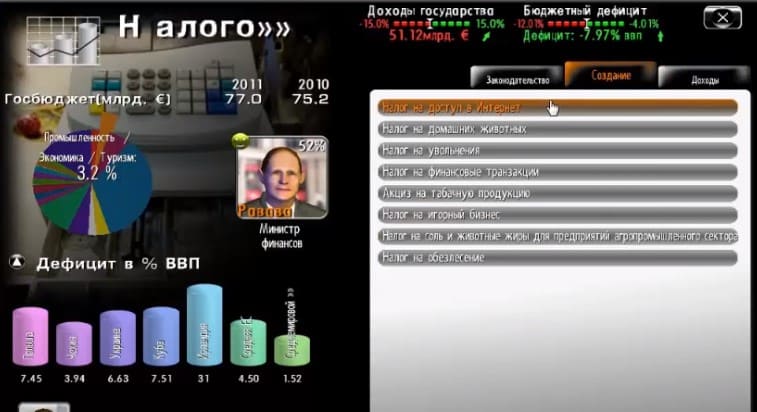 После того, как вы пройдете предыдущую игру нашего списка, вступайте в должность президента в Democracy 3. Теперь придётся отвечать за свои предвыборные обещания, а поможет вам в этом свежесформированный кабинет министров. Причём далеко не все из них будут лояльны вам, а проблем у государства предостаточно – безработица, бездомные, рост цен. Недовольные граждане не станут терпеть долго, а выйдут на улицы с законными требованиями. Конечно, можно ненадолго успокоить их, пообещав в скором времени решить проблемы, но горе вам, если вы не выполните обещания.