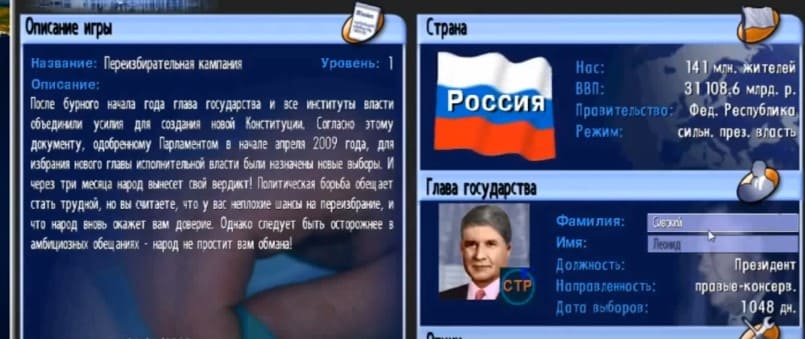 Оригинальное название игры – Geopolitical Simulator, и лишь в отечественной локализации к названию зачем-то прикрутили подзаголовок «Выборы», хотя теме выборов уделена лишь часть игрового процесса. Во всём остальном, Выборы-2008. Геополитический симулятор — это неплохой геополитический симулятор, который ориентируется на реалии 2007-2008 года. Так, например, выбрав в качестве страны КНДР вы станете полноправным диктатором тоталитарного государства, с которым, правда, большая часть мира предпочитает не иметь дел. А выбрав Россию, получите лояльный президенту парламент и сверхдоходы от дорогой нефти.