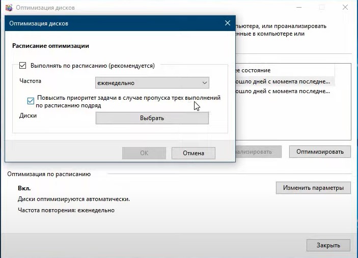 - Отключаем дефрагментацию – при использовании SSD это попросту бесполезный процесс, который разве что уменьшает срок жизни Вашего SSD из-за активной перезаписи информации